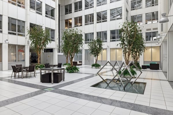 Begrünte Lounge im Atrium zur Mitbenützung (für Besprechungen oder zum Aufenthalt in der Pause)