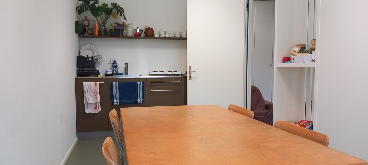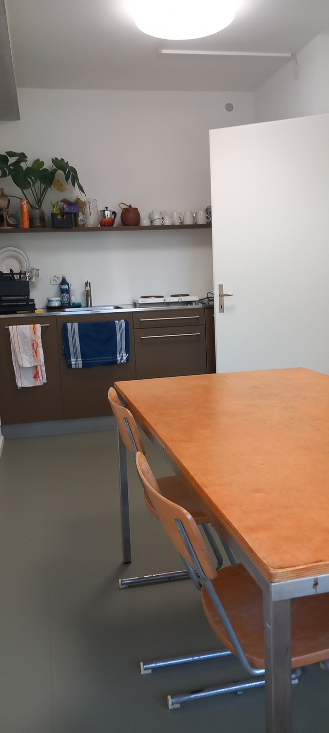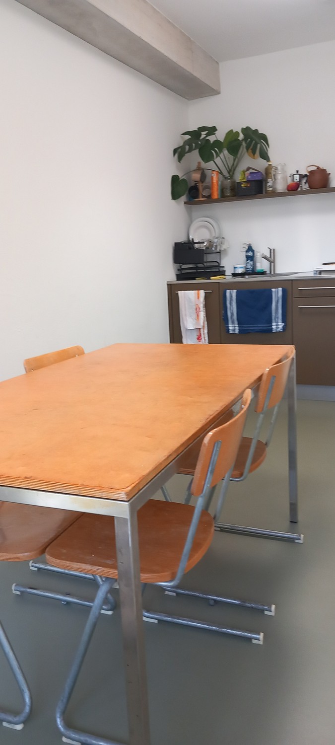 Helles und ruhiges Zimmer zur Untermiete, verfügbar leer oder möbliert mit Tisch und Stühlen.