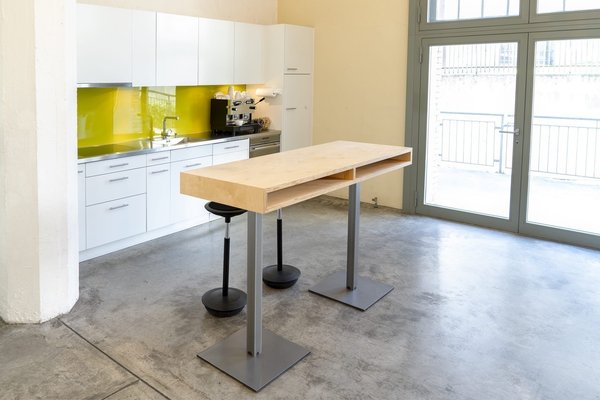 Jeder Arbeitsplatz ist mit einem grossen Tisch und einem Bürostuhl ausgestattet. Die Grundmiete pro Platz beträgt CHF 390.-. Inklusive essenzieller Nebenkosten (Heizung, Reinigung, Internet etc.) liegt die Miete bei CHF 430.-.