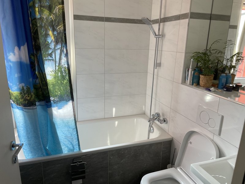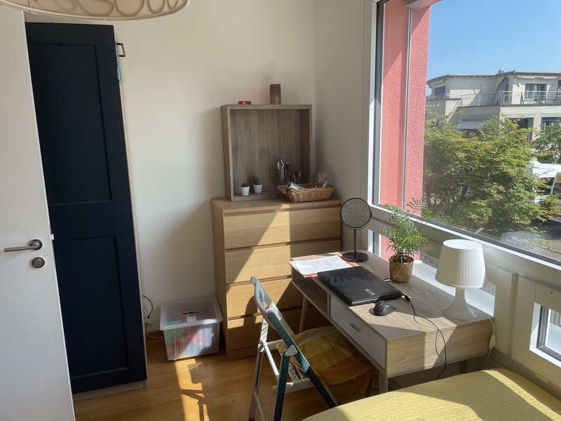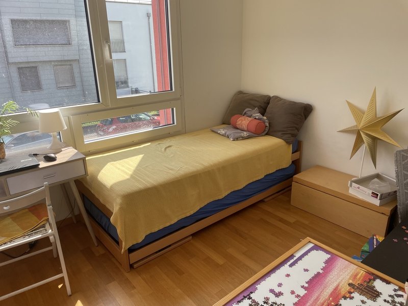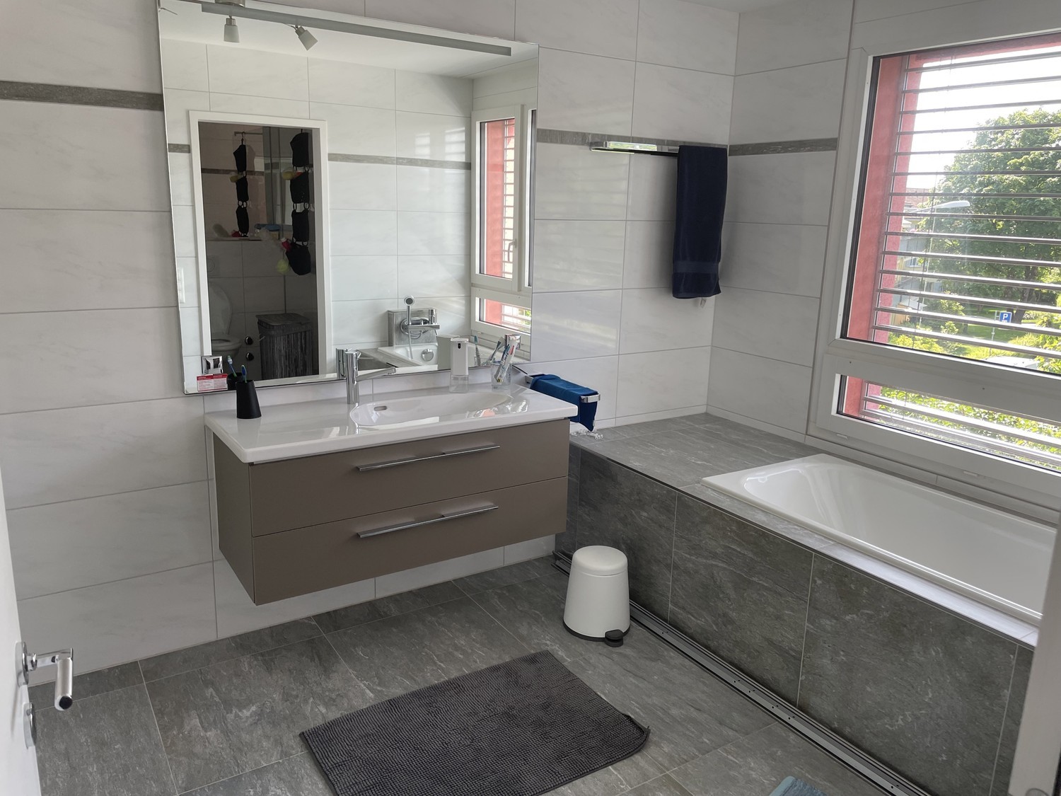 Zimmer ist hell und gross in schönem grossen Haus auf 4 Ebenen. Es steht sehr viel Platz inkl. Aussenterasse, Kellerraum mit Bar/Billiard zur Verfügung. 40m2 Ess-/ Wohnzimmer-Bereich, 2 Bäder, 3 WCs, Aussenterasse, Keller, Waschküche.