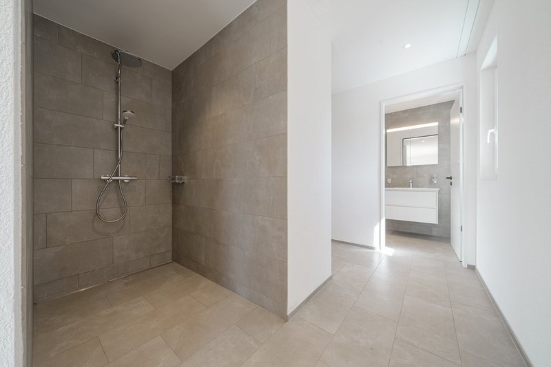 - Stilvolle Nasszelle mit Dusche mit edlen Feinsteinzeugplatten