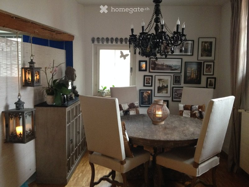 Diese spezielle Altbauwohnung auf 2 Stockwerken (ca. 90m2) hat Parkett (ausser Teppich im Schlafzimmer), alte Balken und Steinwände, sie ist sehr charmant und hell. Die offene und moderne Küche verfügt über einen Backofen, Herd mit Glaskeramik und Geschirrspüler. Das offene Bad mit Eckbadewanne ist räumlich abgetrennt und das WC ist separat. Das niedrige Schlafzimmer mit wunderschöner Steinwand ist im Dachgeschoss und hat einen direkten Zugang zur eigenen und sonnigen 12m2 grossen Dachterrasse mit gemütlicher Lounge und vielen Pflanzen. Die Pflanzen müssen im Sommerhalbjahr regelmässig gegossen werden. Ausserdem profitierst du von den guten und hohen Energien in meiner Wohnung da ich Feng Shui Beraterin bin.