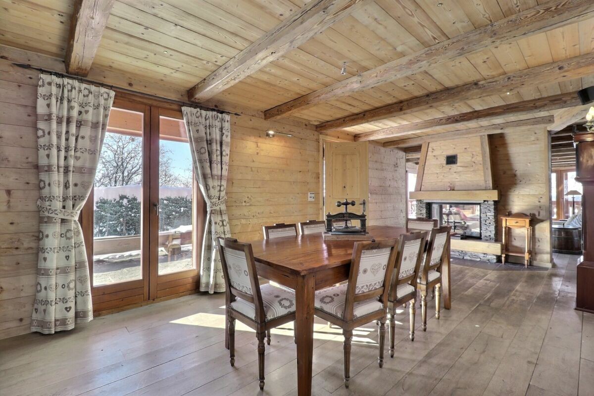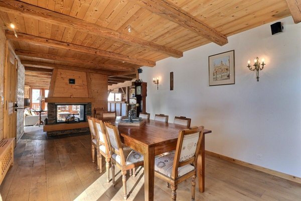 Séjour / salle à manger avec cheminée et accès direct au jardin