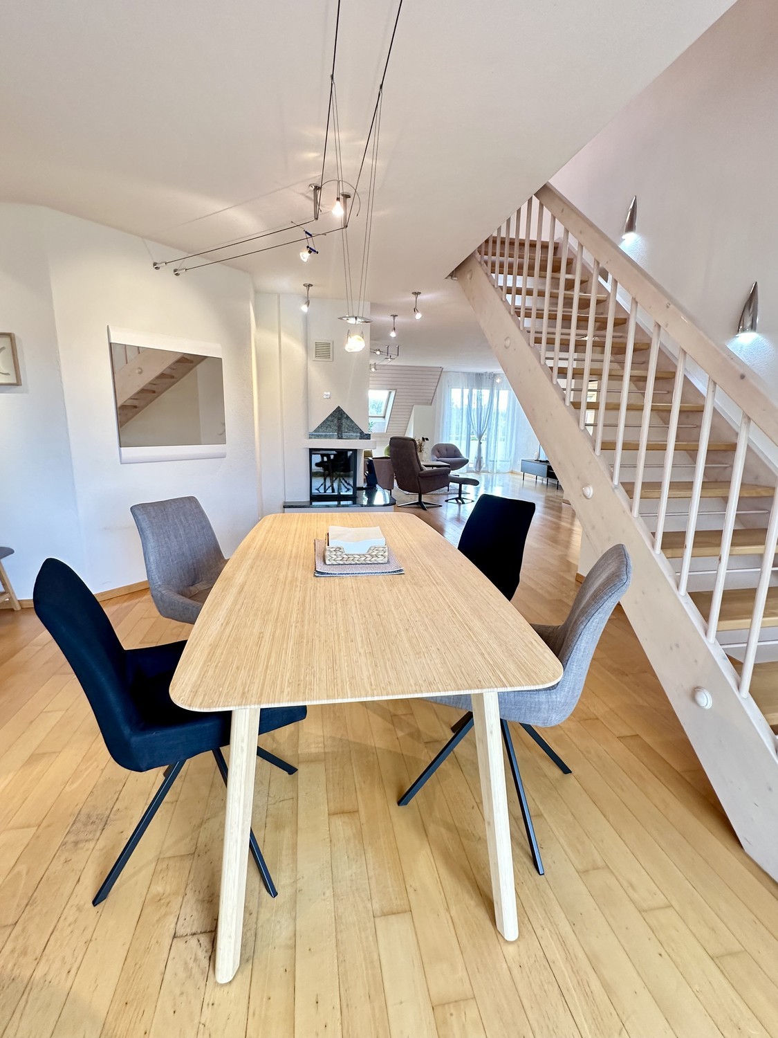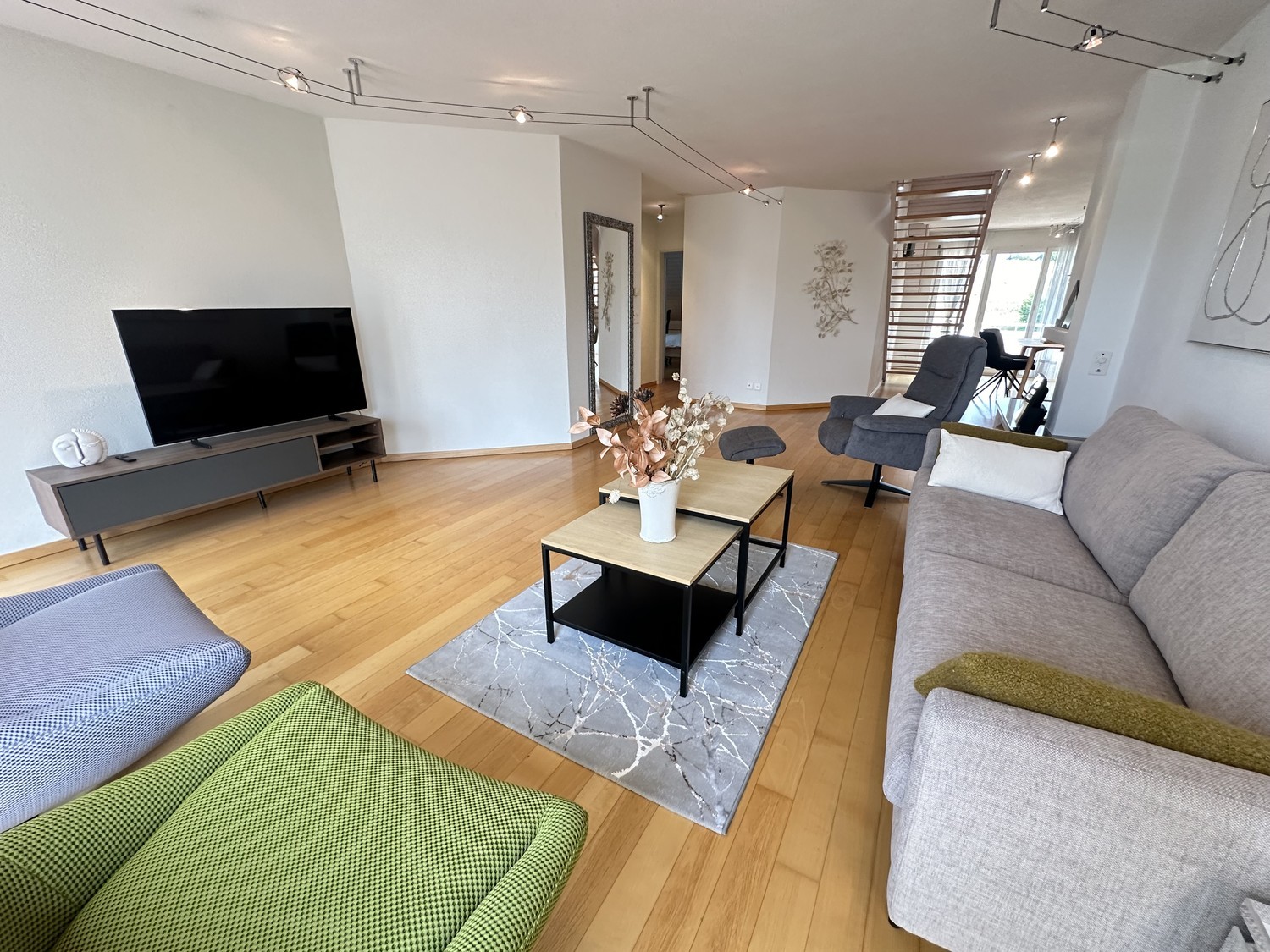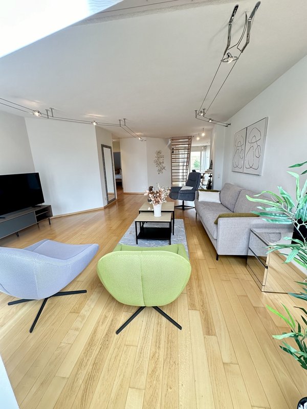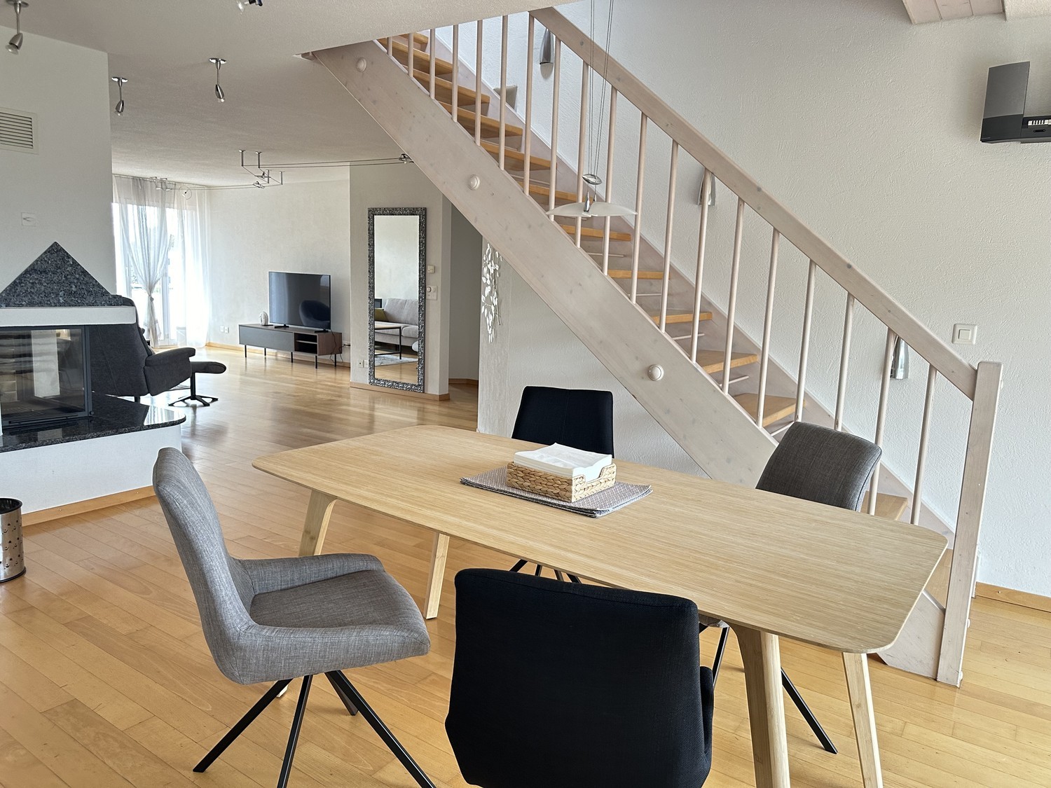 Spacious "5.5 Room" duplex apartment in an attractive natural setting and yet close to urban center in Kloten. The apartment has 4 bedrooms, living room, kitchen, 3 bathroom, washing room (WM/WT) , garage, cellar and two large balconies. The house has 2 floors.
