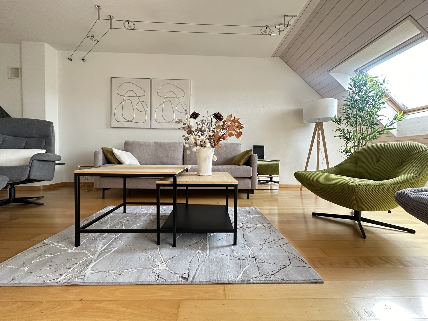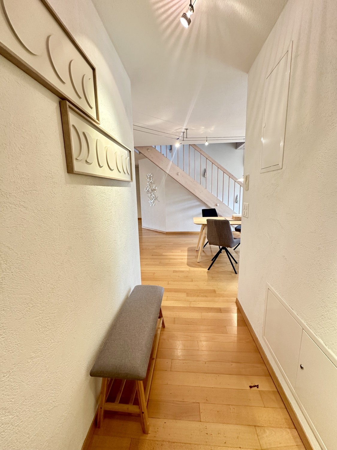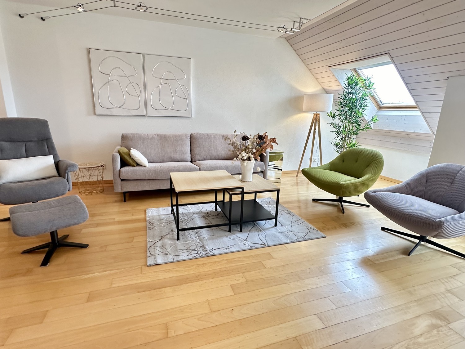 Spacious "5.5 Room" duplex apartment in an attractive natural setting and yet close to urban center in Kloten. The apartment has 4 bedrooms, living room, kitchen, 3 bathroom, washing room (WM/WT) , garage, cellar and two large balconies. The house has 2 floors.