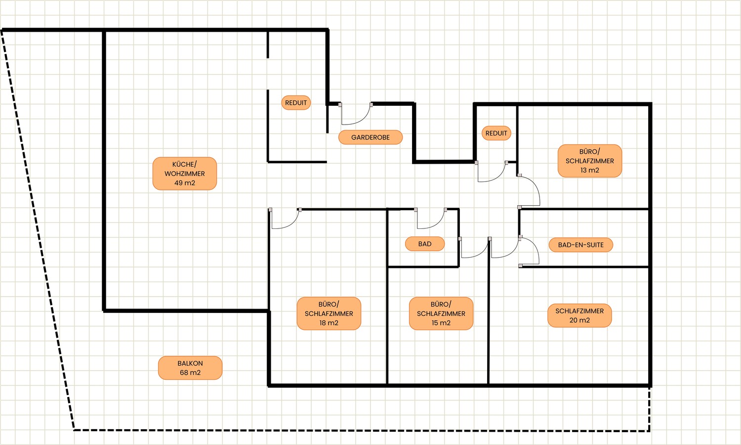 Der helle Wohn- und Essbereich mit einer modern ausgestatteten Küche im Eigentumsstandard (V-ZUG Backofen/ Steamer/ Mikrowelle) bietet ausreichend Platz für geselliges Zusammensein und gemütliche Stunden. Neben der Küche befindet sich ein grosszügiges Reduit mit einem grossen Gefrierschrank und Aufbewahrungsschrank. Die Wohnung verfügt über zwei Nasszellen (Dusche und Badewanne), wovon das Hauptbad en-suite (inkl. Dusch-WC und Badheizkörper) mit dem Hauptschlafzimmer verbunden ist. Die Zimmer sind grosszügig geschnitten (13 bis 20 Quadratmeter) und besitzen, mit Ausnahme eines Zimmers, jeweils grosse Doppeltüren zur umlaufenden Terrasse. Ein weiteres Plus ist das kleine Reduit mit eigenem Waschturm (Waschmaschine u. Tumbler).