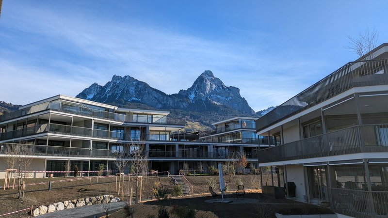 Die Neubau-Wohnung ist Teil der modernen Quartierüberbauung im Grossfeld in Seewen SZ, einem Ortsteil der Gemeinde Schwyz. Der Hauptort des Kanton Schwyz mit ca. 17'000 Einwohnern ist perfekt für Personen die Ruhe und Erholung suchen aber auf grundlegende Infrastruktur nicht verzichten möchten. Das Quartier für Jung und Alt verfügt über eine Tiefgarage, einen gemütlichen Aussenbereich und einen Spielplatz für Kinder.