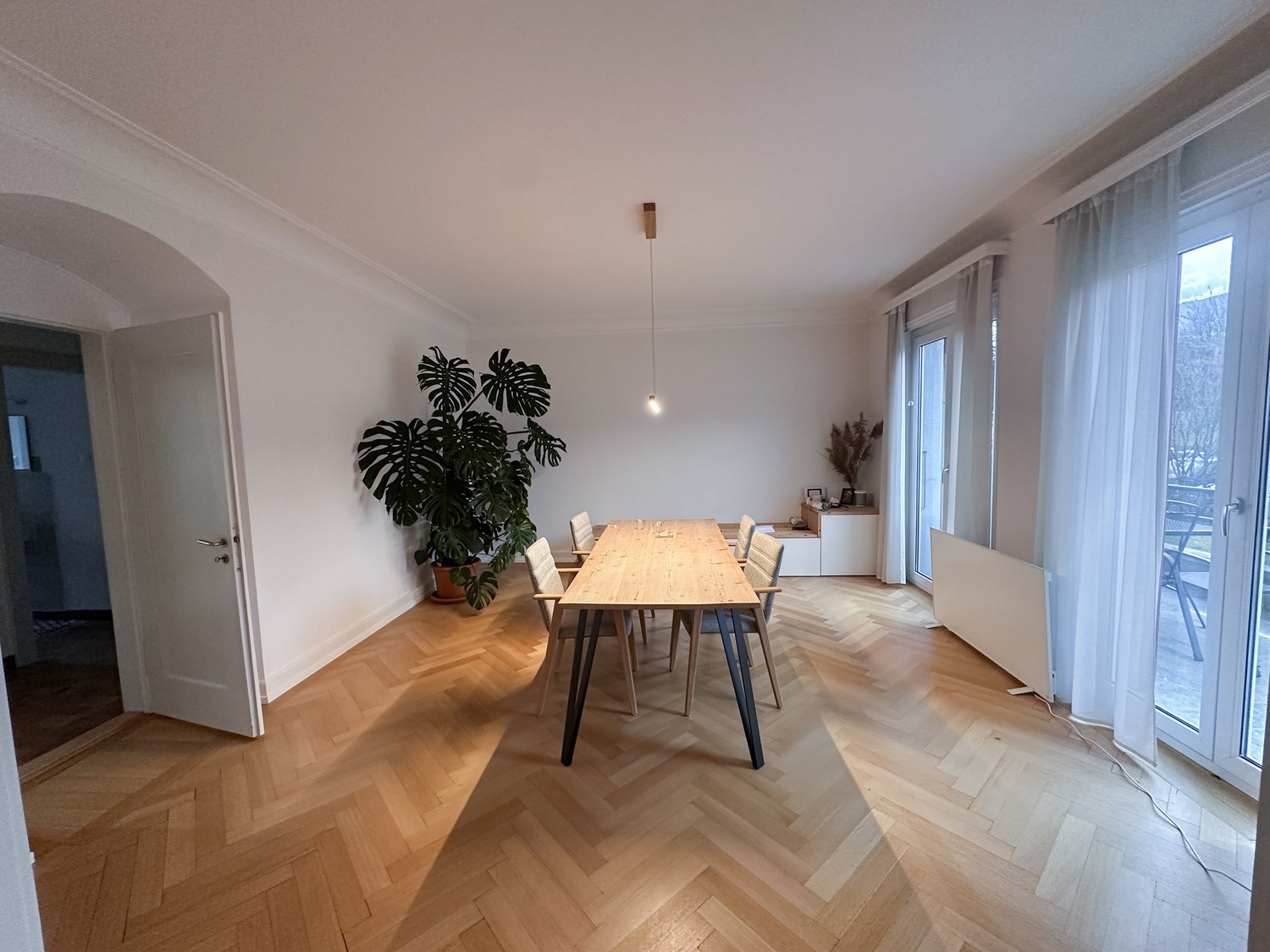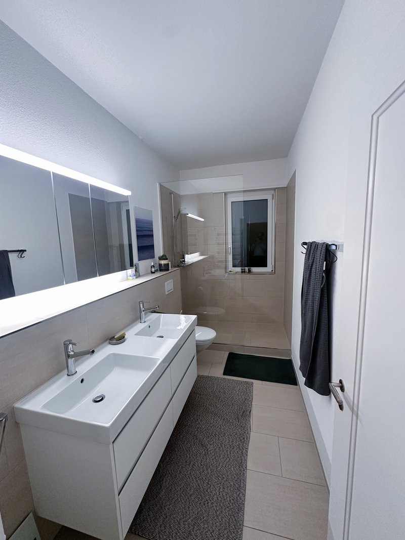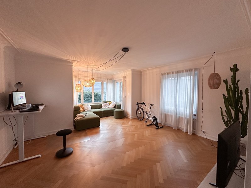 Die Wohnung ist 140 m2 gross und liegt im Hochparterre. Sie verfügt über eine grosse Terrasse mit Abendsonne sowie einen kleinen Balkon mit Morgensonne - perfekt für Kaffee am Morgen oder ein Feierabendbier in der Sonne. Zusätzlich gibt es einen Garten zur gemeinsamen Nutzung mit zwei weiteren Parteien.