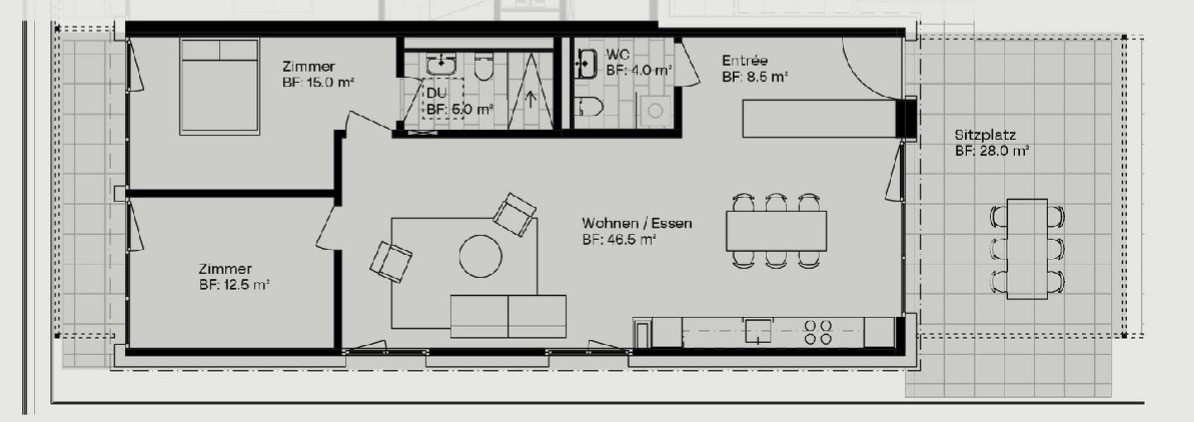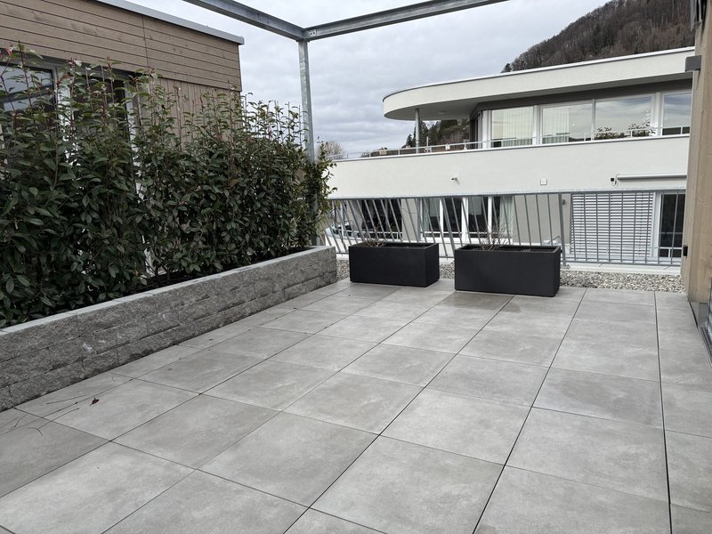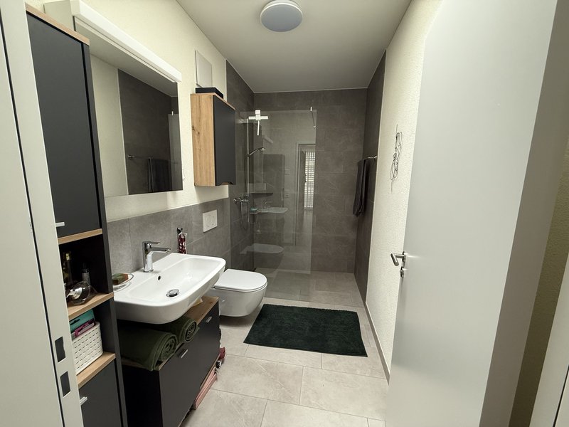 Ich wohne in einer neubau 3 ½ Zimmerwohnung mit 93 m² plus zusätzlichem Aussenbereich im OG (mit Lift)