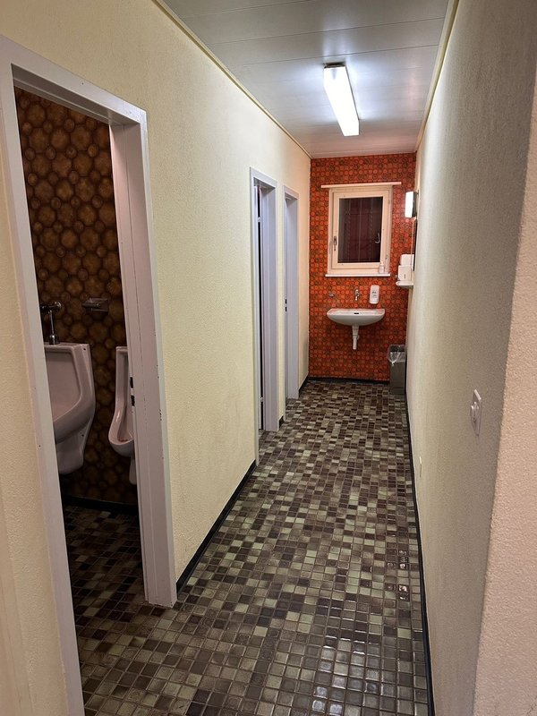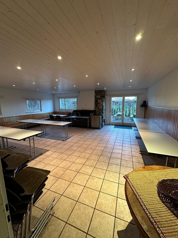 Ein grosser Vorplatz bietet zusätzliche Möglichkeiten für Aktivitäten im Freien. Ergänzend stehen eine WC-Anlage, ein Lagerraum sowie ein kleiner Zwischenraum für flexible Nutzung zur Verfügung.