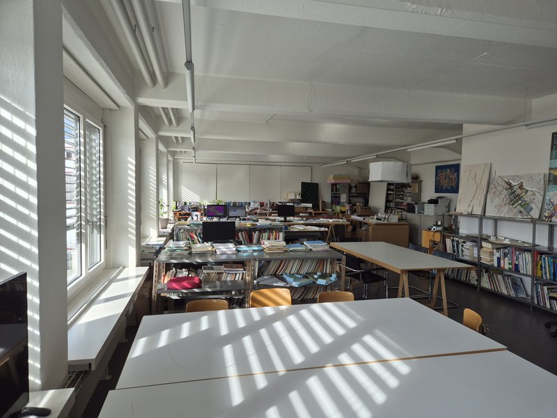 Die Räume befinden sich im 3. Obergeschoss. Die Hauptfläche misst rund 100m². Ein Lagerraum von 20m² kann dazu gemietet werden.