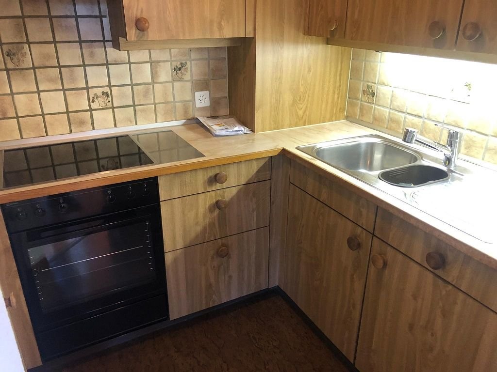 - Zweckmässige Küche mit Novilon-Boden und Glaskeramikkochfeld