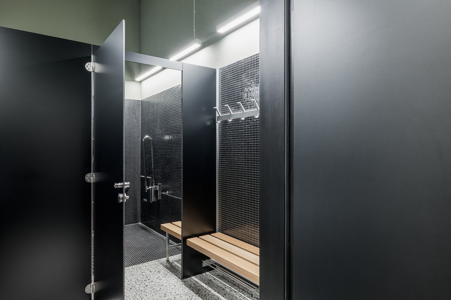 Im Untergeschoss stehen Duschanlagen zur gemeinschaftlichen Nutzung zur Verfügung.