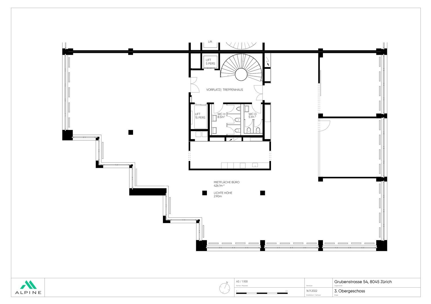 Ist Ihnen diese Fläche mit 440 m² zu klein? Im 1. und 2. OG stehen je 440 m² Büroflächen zur Verfügung. Momentan befinden sich diese im Grundausbau, können aber auch in ausgebautem Zustand gemietet werden. Der Aufschlag beträgt ca. CHF 90.-/m² pro Etage. Unter https://alpine-immo.ch/raum/2654-1111 finden Sie weitere Infos zu den beiden Büroräumlichkeiten.
