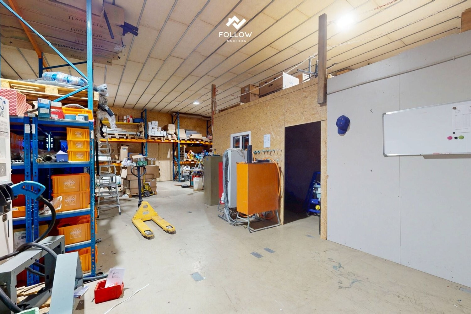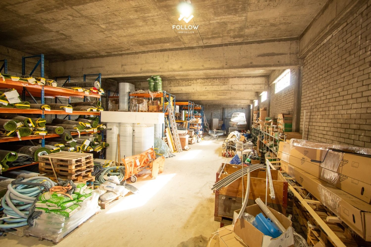 L'entrepôt offre des halls de différentes tailles avec de très hauts plafonds, qui peuvent tous être fermés séparément. Ils peuvent ainsi être loués à différents locataires. Depuis le grand entrepôt au sous-sol, un monte-charge permet d'accéder facilement au vaste entrepôt à palettes. Une grande partie des surfaces est déjà louée, ce qui constitue une condition idéale pour des revenus stables.