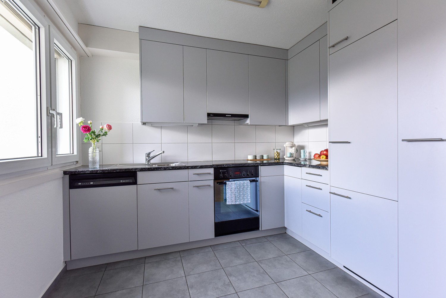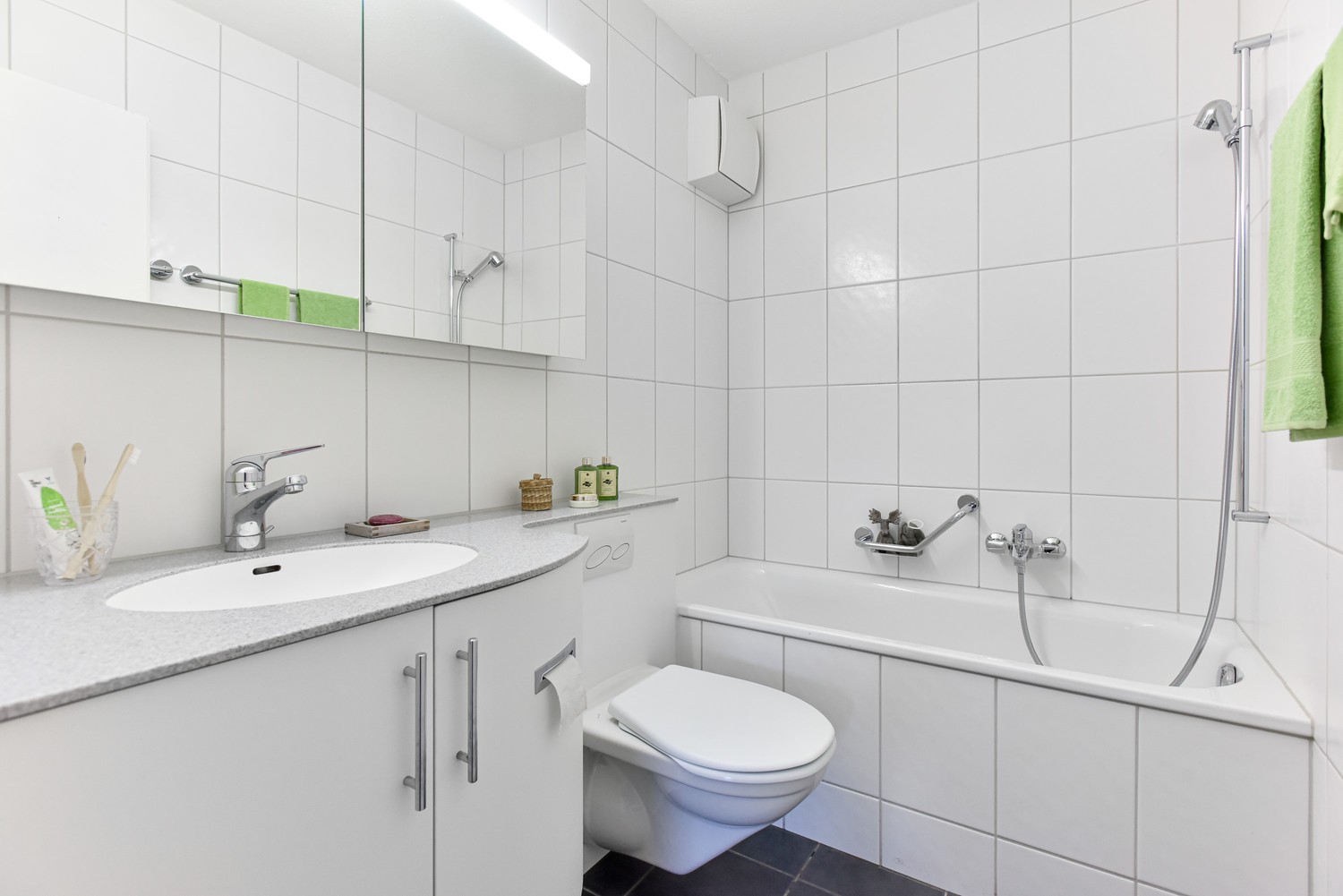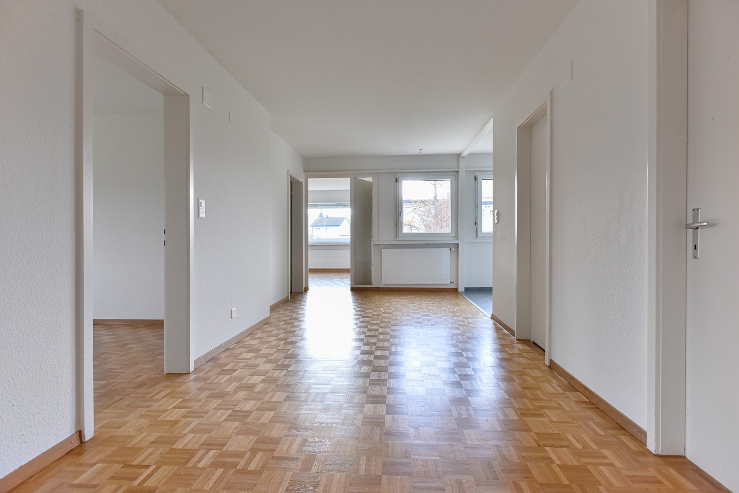 In ruhigem Wohnquartier vermieten eine helle und grosszügige 4.5-Zimmerwohnung im 1. OG. Das Objekt verfügt über ein lichtdurchflutetes Wohnzimmer, welches offen zu einem Schlafzimmer steht. Die modernen Küche mit Granitabdeckung, Glaskeramik und einem Geschirrspüler bietet genügend Platz zum kochen. Das Badezimmer ist in einem guten, sanierten Zustand, ebenfalls gibt es ein separates WC mit Lavabo. Der grosse Balkon lädt zum Verweilen ein. Die gesamte Wohnung verfügt über ein Parkettboden, Bad/WC mit Plattenböden, Einbauschränke im Entrée, zus. Abstellraum und ein Kellerabteil.