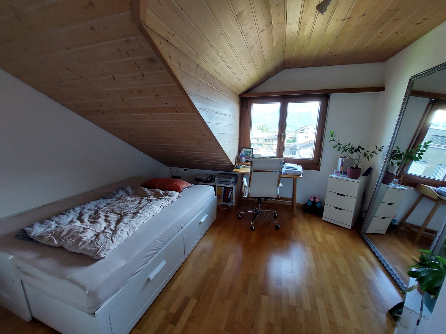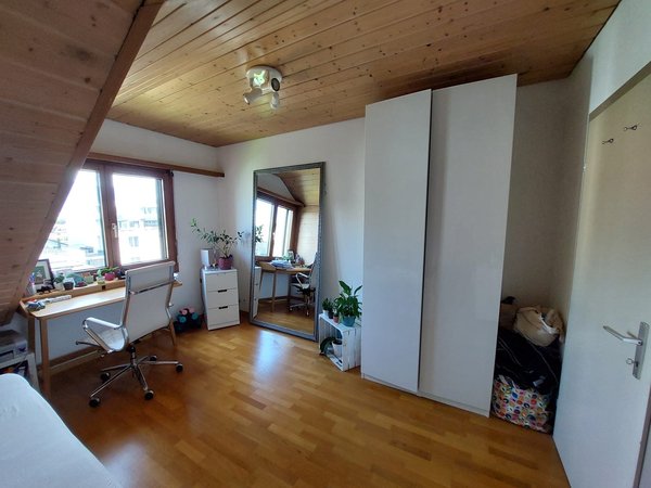 Das befindet sich in einer grossen und komplett eingerichteten und recht schönen Wohnung. Aufgrund der glücklicherweise noch unverbauten Lage hat man beste Aussicht in alle Richtungen von den 2 Balkonen und ist aufgrund der Höhe trotz der zentralen Lage mitten im Zentrum von Buchs sehr lärmarm.