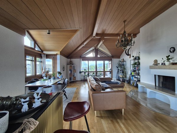 Die Wohnung selbst ist ca. 110m2 und vollständig inklusive Küche und Wohnzimmer eingerichtet. Die zwei Balkone geben beste Sicht und im Winter lässt es sich gemütlich vor dem Kamin geniessen.