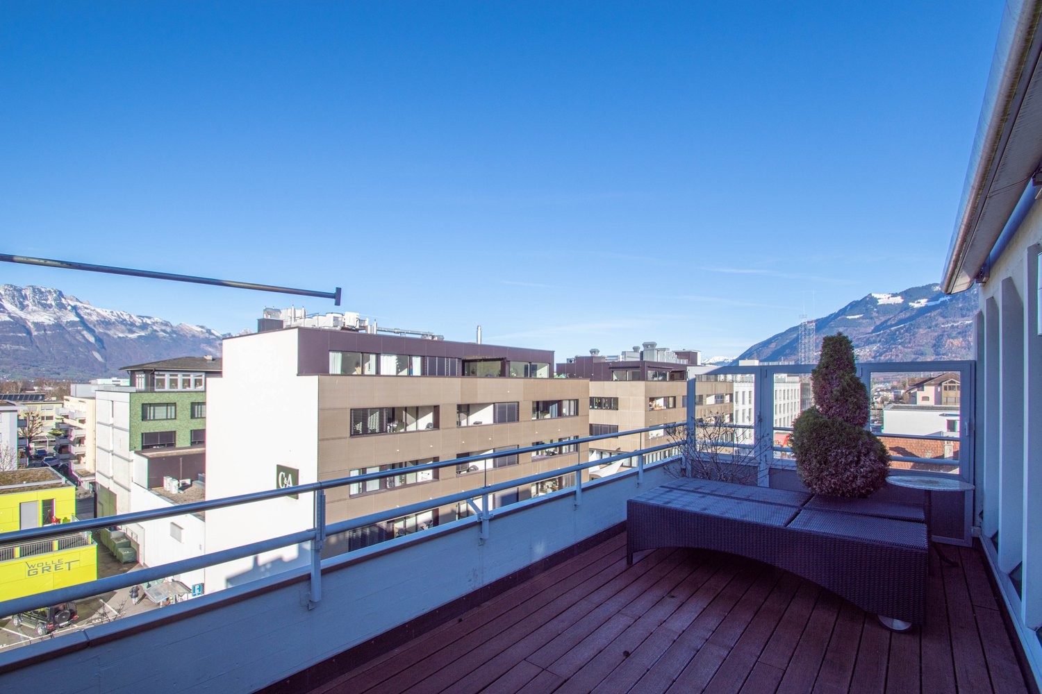 Traumhafte Attika mit Aussicht über die Dächer von Buchs