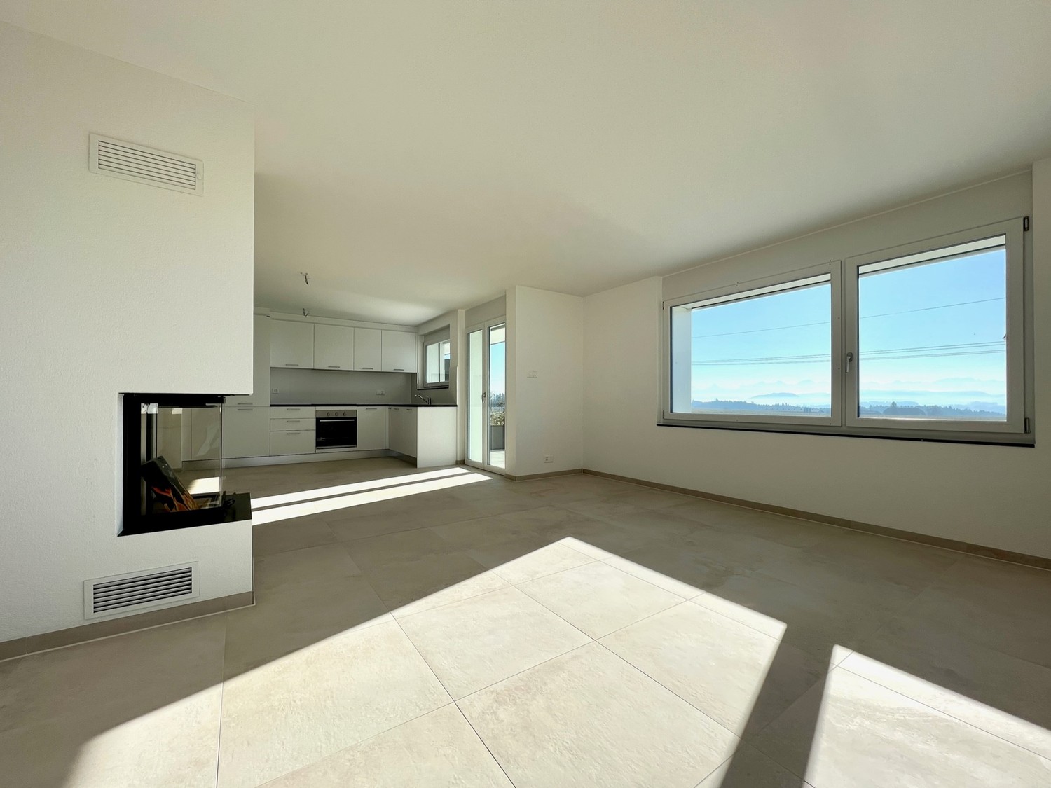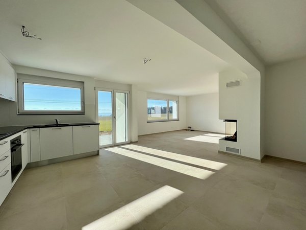 Moderne Erdgeschoss-Wohnung mit grossem Sitzplatz und Kamin in Säriswil