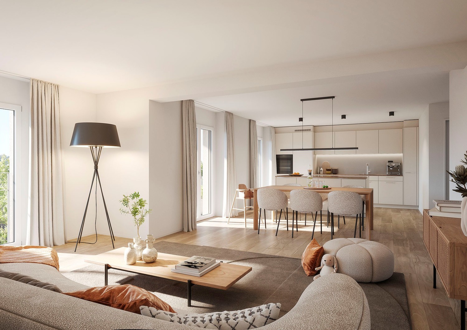 Die Maisonette-Wohnungen begeistern durch grosszügige Wohnflächen über zwei Etagen, Loggia/Balkon und ein besonders offenes Wohngefühl.