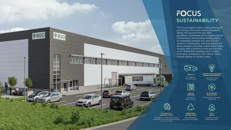 Das Focus Logistikzentrum ist daher ideal für Unternehmen, die modernste Logistikflächen in einer verkehrsgünstigen, nachhaltigen und zukunftsorientierten Umgebung suchen.