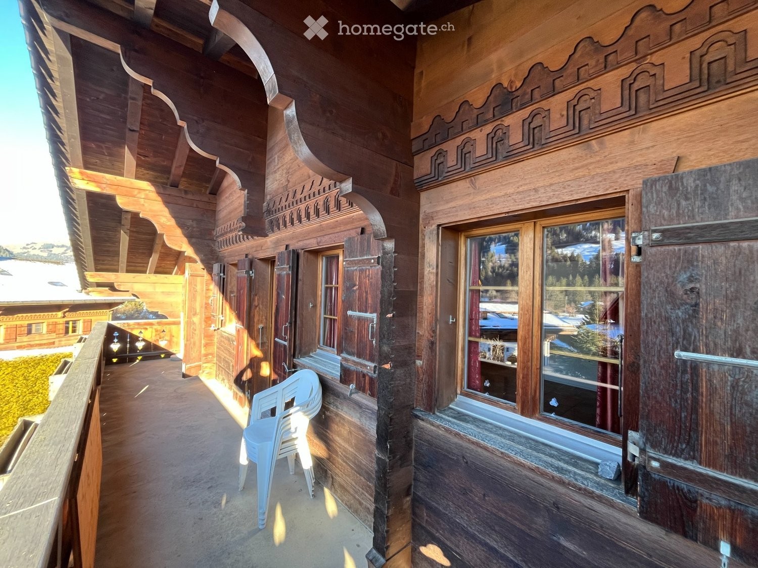 of Gstaad and the pedestrian street. Occupies the entire upper floor