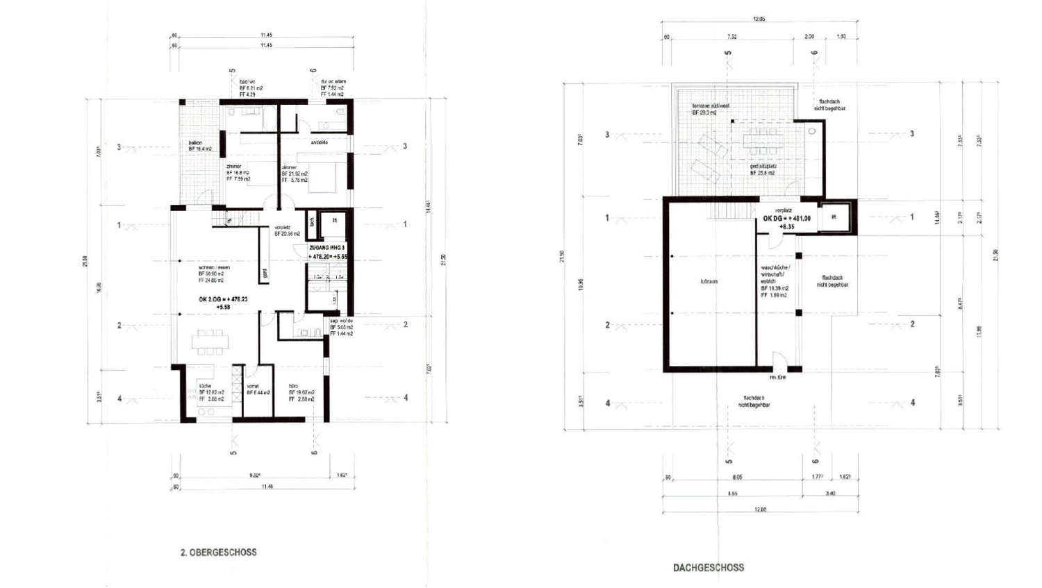 Sämtliche Schlafzimmer sowie der Wohn-Essbereich sind mit Parkettboden ausgestattet. Die Badezimmer verfügen über einen Plattenboden.