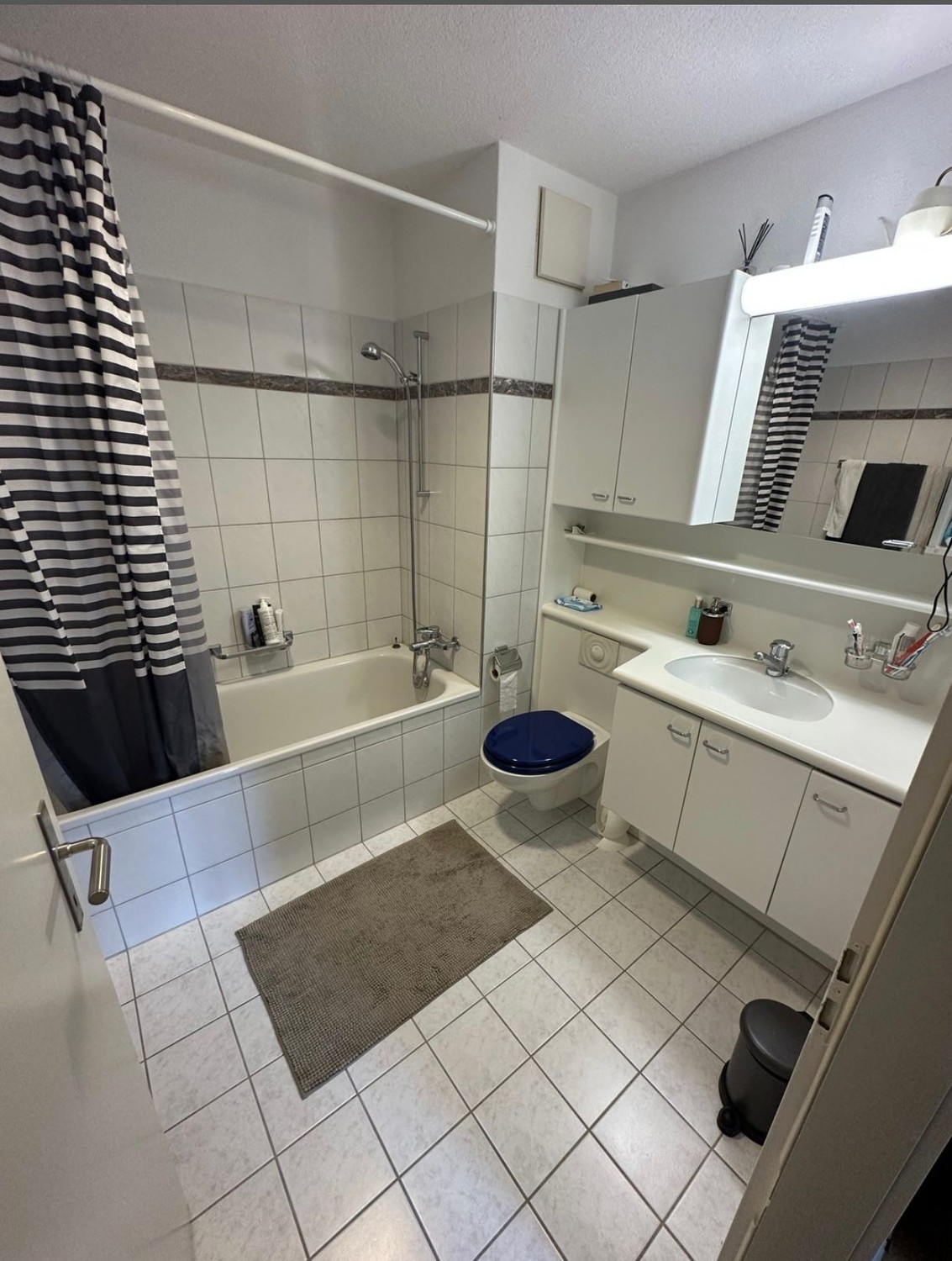 Die Wohnung hat ein großes Bad, ein Gästebad mit Klo, eine geräumige Küche mit allem was man braucht und ein Wohnzimmer mit Fernseher & Apple TV.