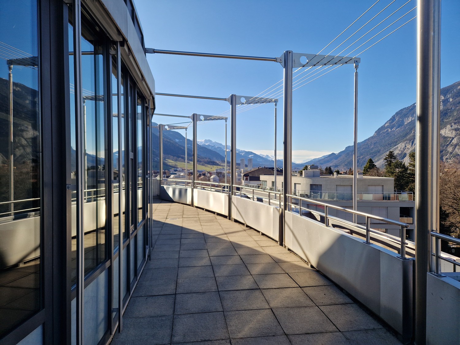Die Liegenschaft überzeugt durch ihre zentrale Lage und hervorragende Erreichbarkeit am Bahnhof Chur. Wichtige Verkehrsanbindungen befinden sich in unmittelbarer Nähe. Das gepflegte Gebäude bietet ein professionelles Arbeitsumfeld und ein angenehmes Umfeld für Mitarbeitende und Kundschaft.