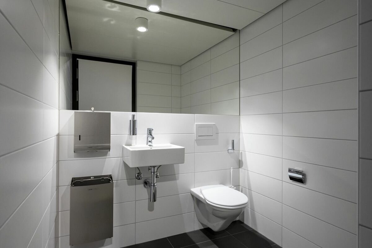 Zur ausschliesslichen Nutzung stehen eine separate Damen- und Herrentoilette sowie ein Raum für die Reinigungskraft o.ä. mit Wasseranschluss/Lavabo zur Verfügung.