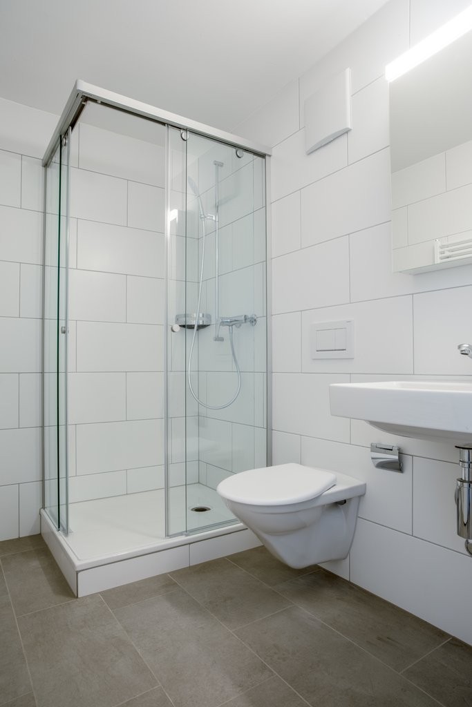 Modernes Badezimmer mit Dusche / WC / Lavabo mit Spiegelschrank
