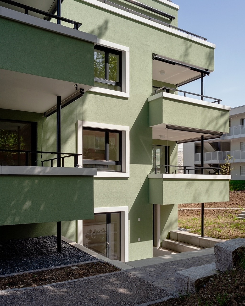 Privater Balkon: Mit Schiebetüren zugänglich und Blick ins Grüne