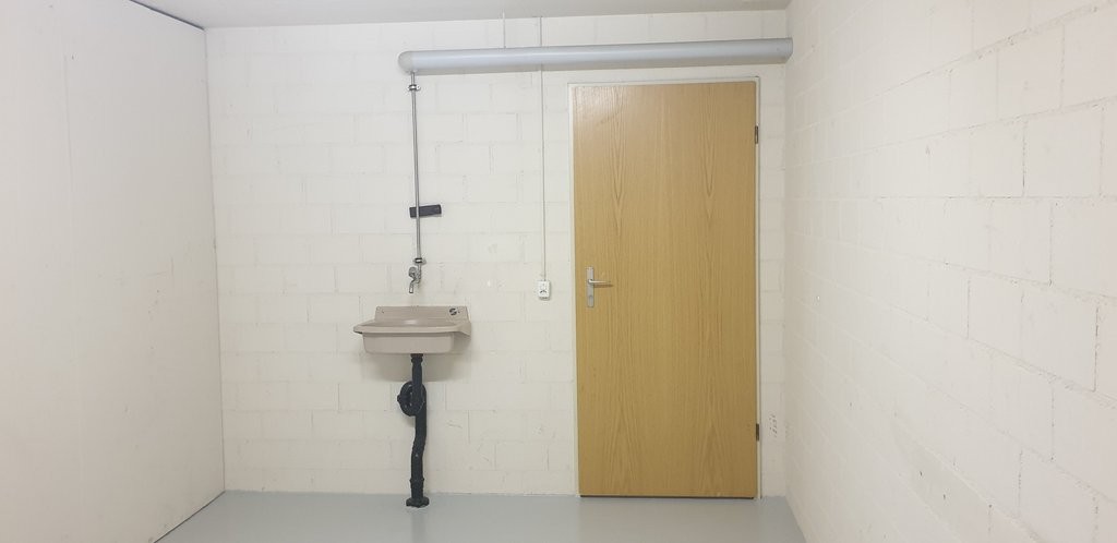 Der Raum ist mit einem Lavabo, einem Radiator und einem Fenster ausgestattet! Er befindet sich im Untergeschoss eines Mehrfamilienhauses.