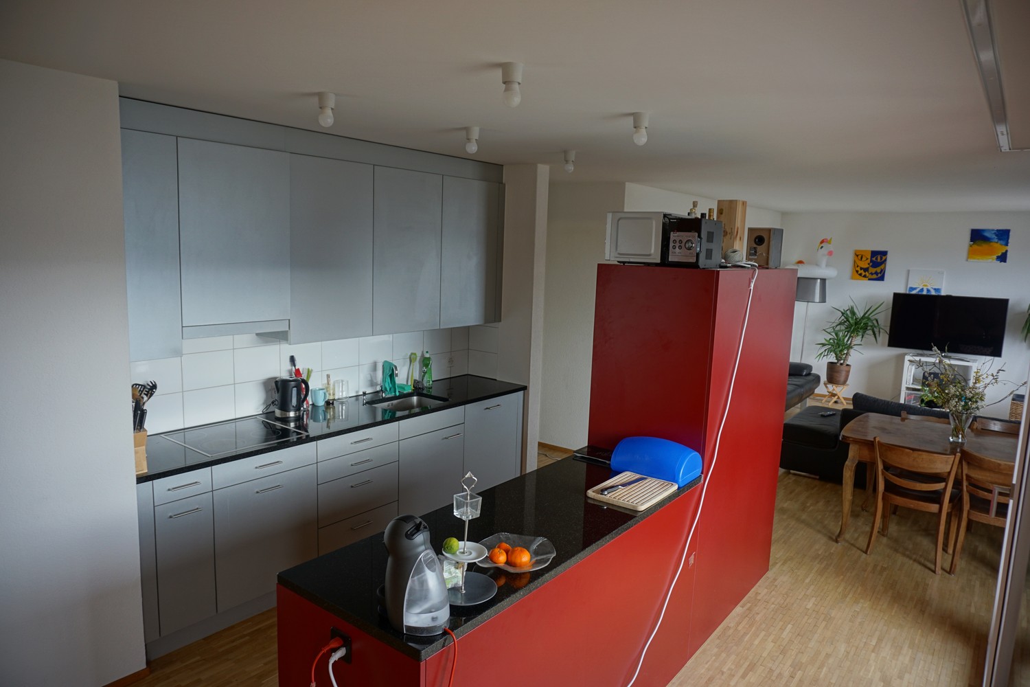 Yves (m, 27, Raketen-Ingenieur, gechillter Berner), Anki(w, 30, Data Science Expertin, Kreative-Strickerin und grüner Daumen der WG), Alicia (w, 26, Psychologie – Studentin, Mitbewohnerin mit Herz und WG-Deko beauftragte), Olivia (w, 21 Jura-Studentin und flight attendant, Rennvelo-Fan und Hobby Köchin). Zusammen mit dir bilden wir eine 5er-WG. Wir kochen alle gerne und abwechslungsreich – von schlemmer Menüs bis hin zu vollwertiger pflanzlicher Kost ist alles dabei. Natürlich geniessen wir auch die Feierabende nach Studium oder Arbeit. Ab und zu bei einem gemeinsamen Bier auf dem Balkon oder mit Snacks vor unserem riesigen TV bei der aktuellen WG-Serie (besonders Yves auf seinem Stammplatz).