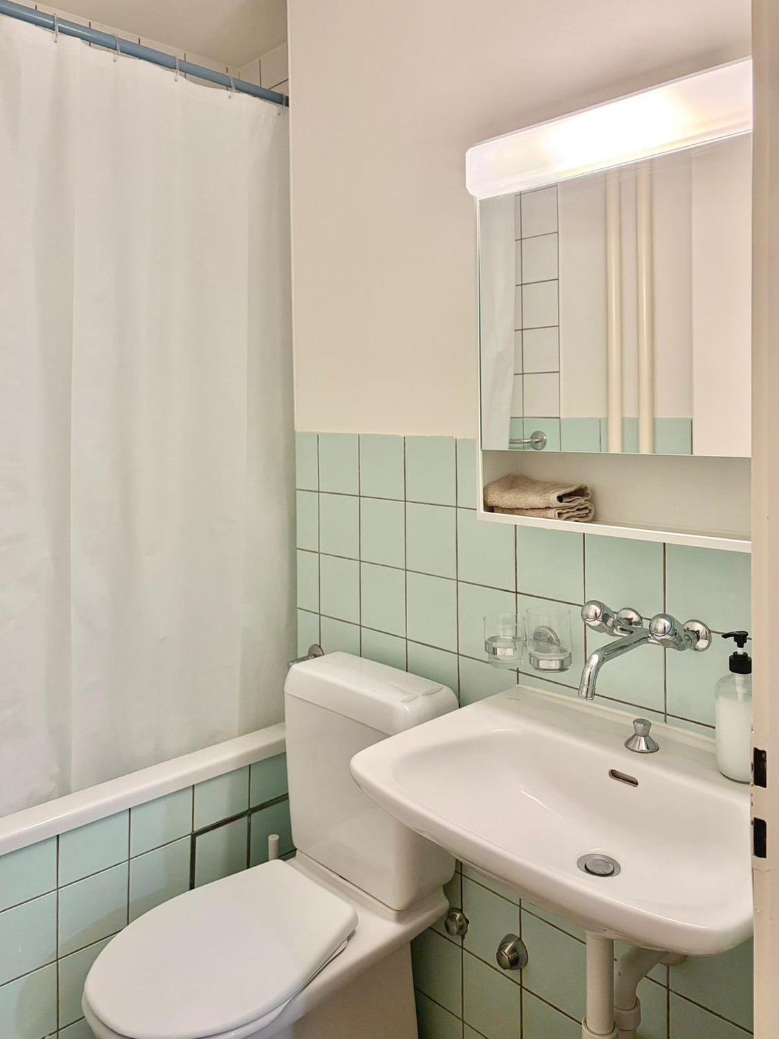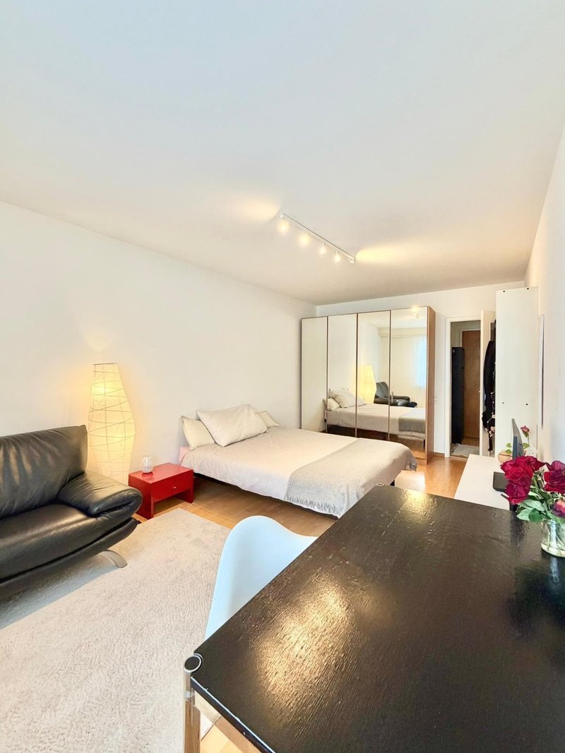 Very calm area and well connected with tram and bus lines. Coop, Migros, Denner and many shops in the area, within less than 5 minutes walking distance.