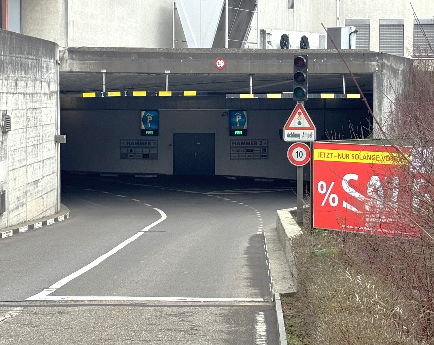 AEH-Platz im öffentlichen Parking Hammer 1 in Olten. Der AEH-Platz befindet sich im 2.UG der Autoeinstellhalle. Via Lift gelangen Sie zu den Einkaufsläden im Hammer 1 u. Hammer 2 (Migros).
