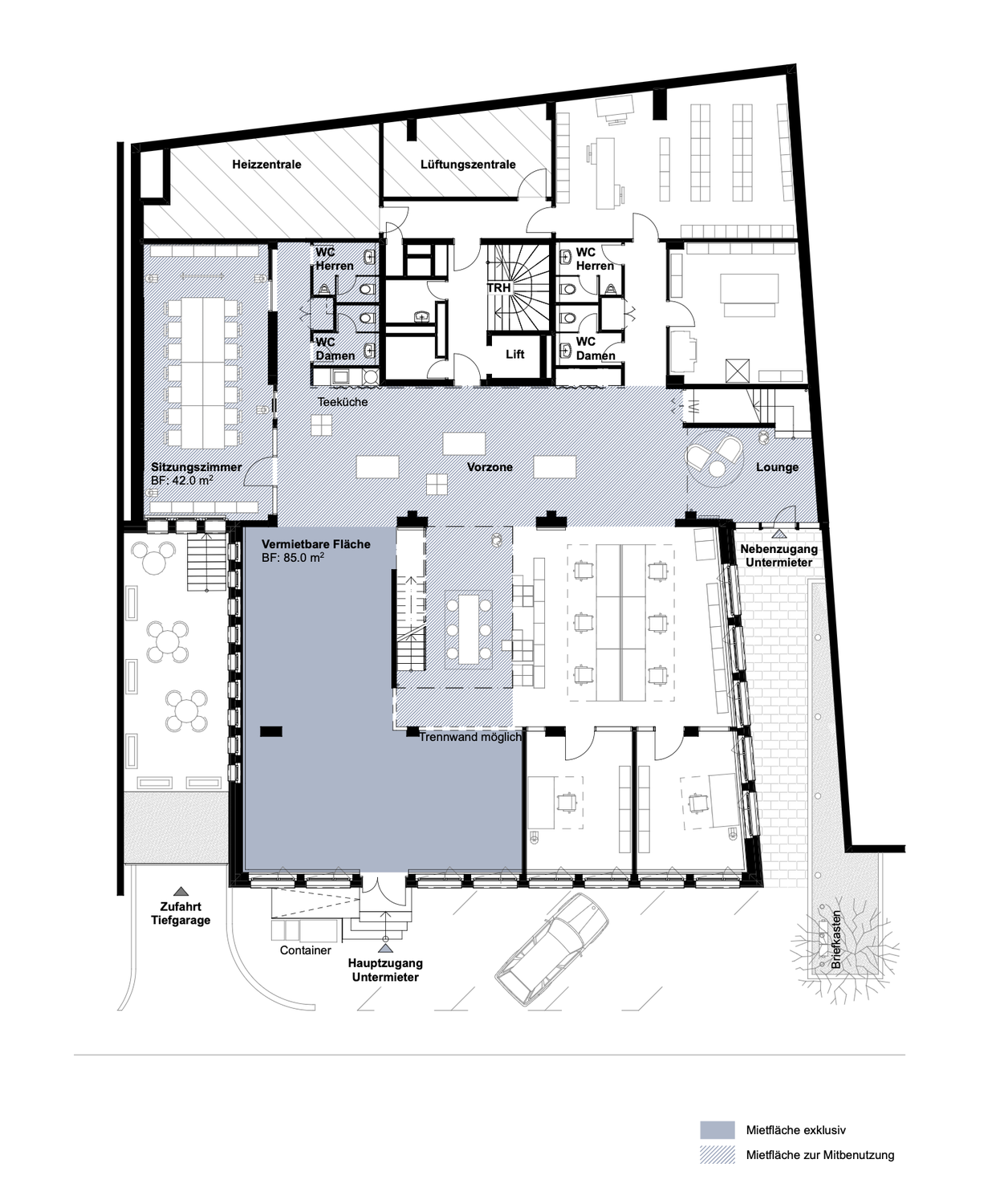 - Mitbenutzung der gemeinsamen Infrastruktur (WC-Anlage, Sitzungszimmer, Teeküche)