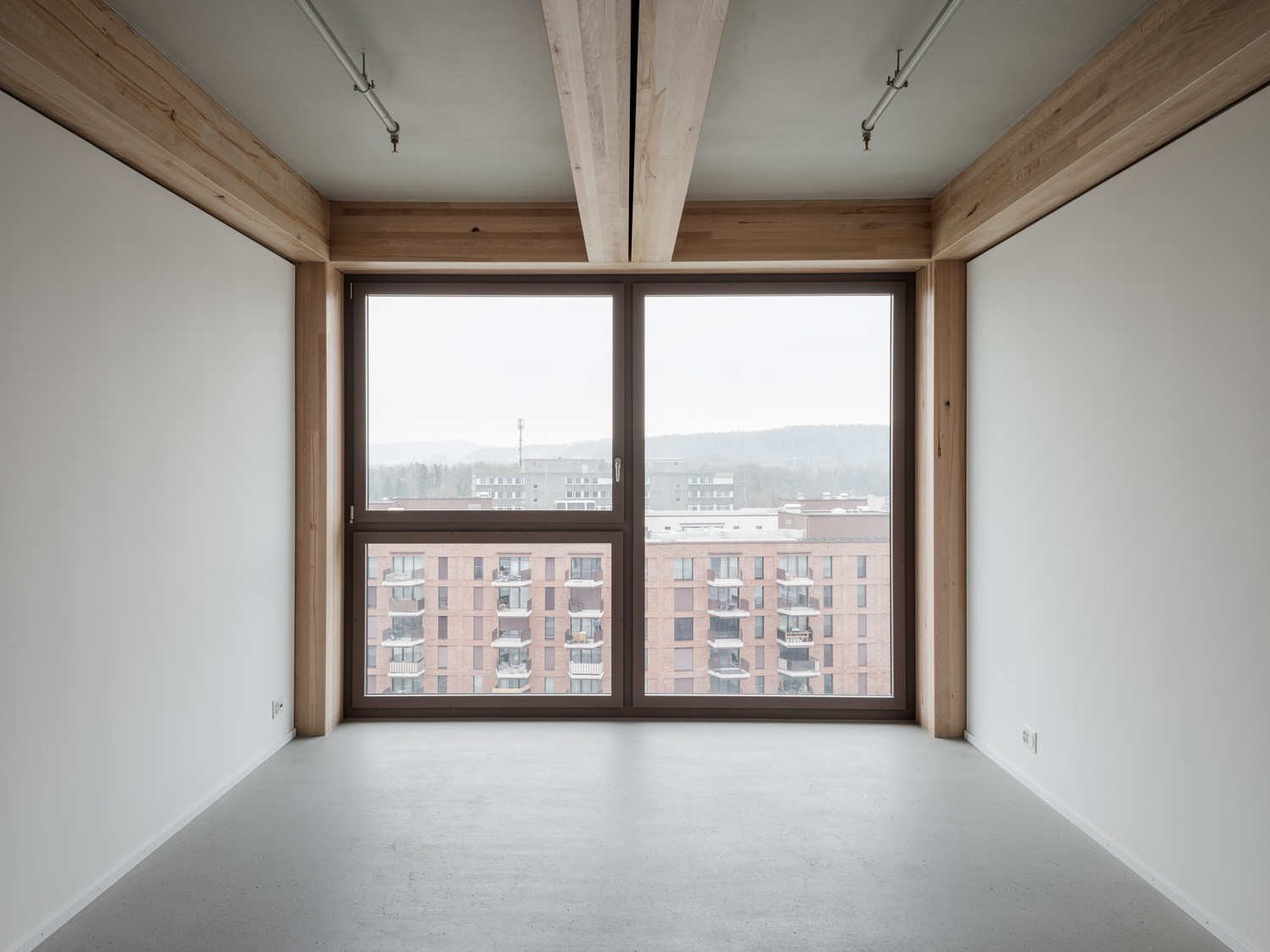 Like living the high life – but want it to be sustainable and comfortable too? The innovative Holzhybridhochhaus is just what you need. This unmistakable landmark of the Zwhatt site offers individuals, couples and families – as well as flatmates – a taste of urban life with a warm, wood-influenced ambience.