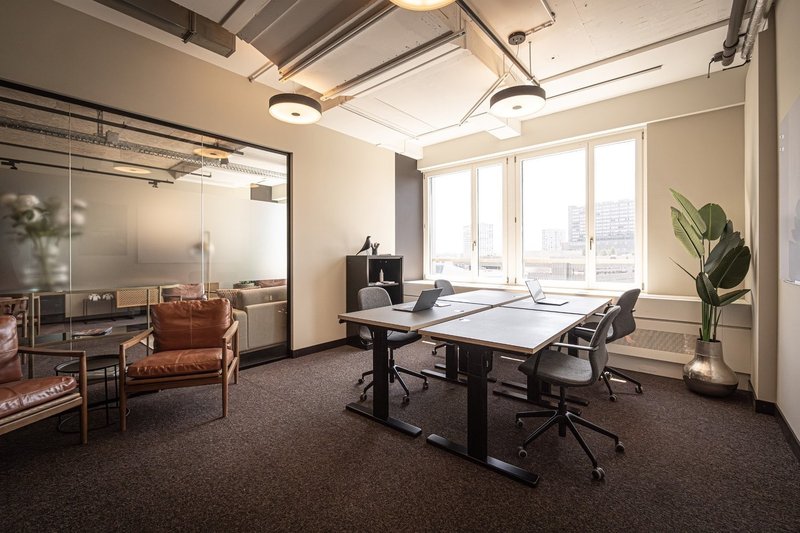 Die Bürofläche besteht aus mehreren komplett möblierten Teambüros , die individuell mietbar sind – ab 4 Personen für CHF 4'020. Die Büros sind ausgestattet mit höhenverstellbaren Schreibtischen, ergonomischen Bürostühlen, Whiteboards sowie einer eigenen Lounge. Grosse Fenster sorgen für viel Tageslicht und einen beeindruckenden Blick über die Stadt.