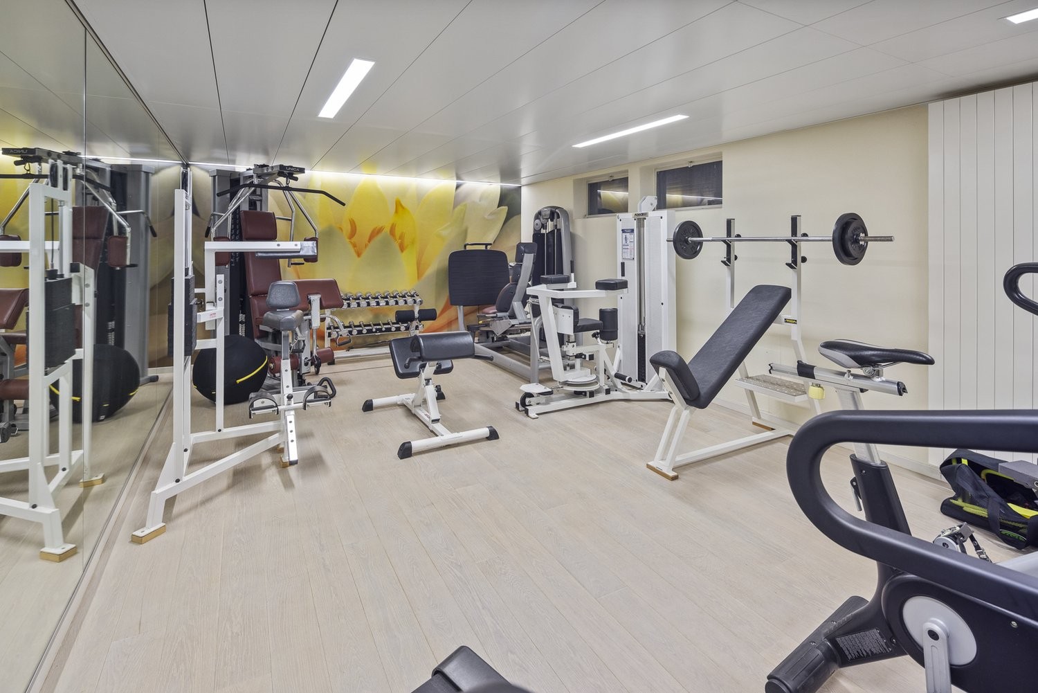 Das Untergeschoss beeindruckt mit einem hochwertig ausgebauten, grossen Vorratsraum fast wie ein eigener kleiner Feinkostmarkt. Ein geräumiger Mehrzweckraum und diverse Kellerräume bieten zudem reichlich Platz für Hobbys und Stauraum. Sogar ein Fitnessraum für die tägliche Sporteinheit ist hier zu finden. Die Doppelgarage und zwei Aussenparkplätze runden das grosszügige Platzangebot ab.
