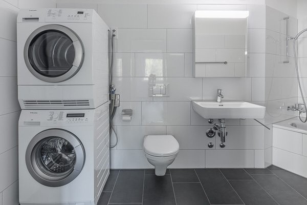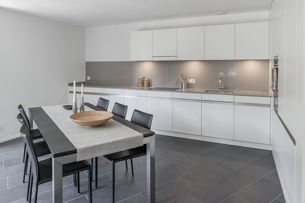 - Moderne Innen- und Aussenarchitektur (im Grundrissplan blau markiert) - Schlicht-elegante Küche mit hochwertiger Ausstattung - Bodenbelag Platten - Garderobe im Eingangsbereich mit Wandschrank - Bad / WC mit Waschmaschine / Trockner - Gästetoilette mit Dusche - Gedeckter Balkon - Eigenes Kellerabteil - Lift - Einstellplatz à CHF 125.- pro Monat