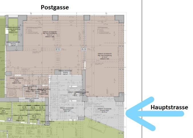 - Grosse Schaufenster in Richtung Hauptstrasse und Postgasse