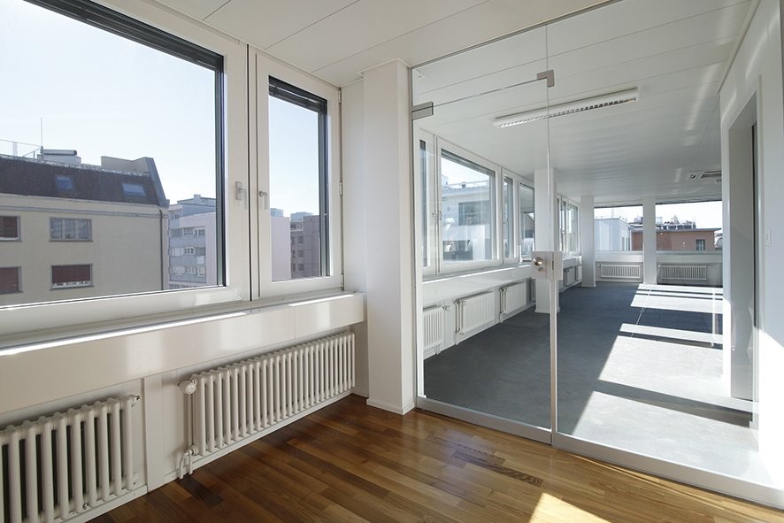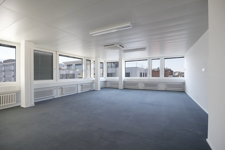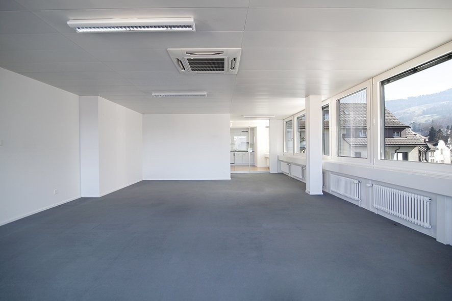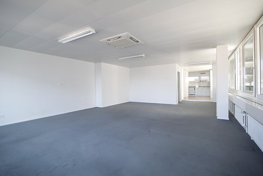 Die Mietfläche ist bereit für einen sofortigen Einzug. Mit dem Parkettboden im Eingangsbereich und dem Teppichboden im Arbeitsbereich sowie der vorhandenen Küche erstrahlt das Objekt in einem modernem Ambiente. Die grossen Fensterfronten lassen sich durch elektrische Aussenlamellenstoren bequem verdunkeln.