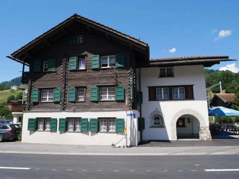 Lage und Umgebung: Das traditionelle Chalet-Gebäude mit grünen Fensterläden liegt in ruhiger Lage und bietet eine wunderschöne Aussicht. Die Wohnung ist sonnig gelegen und sehr ruhig. Der Bahnhof Kübliss ist nur 6 Gehminuten entfernt, die Bushaltestelle sogar nur 4 Minuten. Ein Coop-Supermarkt befindet sich 12 Gehminuten entfernt. Die Nähe zu einem Fluss und die bergige Umgebung machen diese Lage besonders attraktiv.