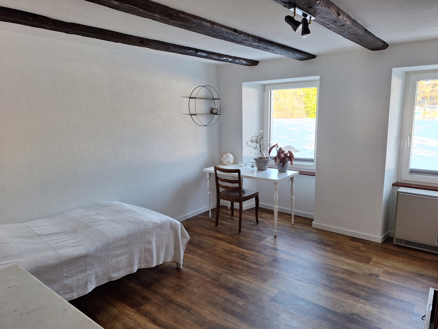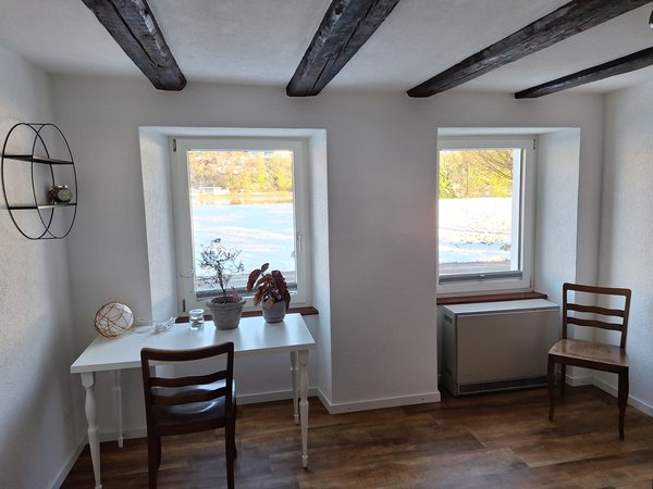 Wir vermieten ein grosses, helles, neu renoviertes Zimmer mit Rheinblick in einem ehemaligen Bauernhaus in ländlicher Gegend in Full.