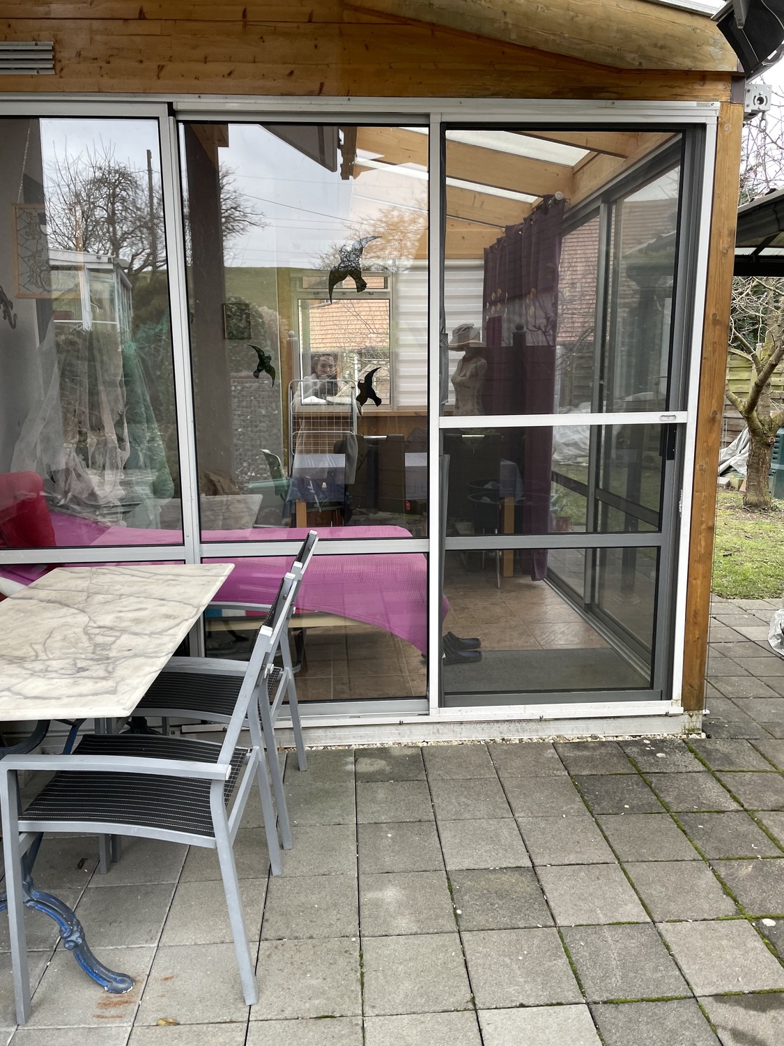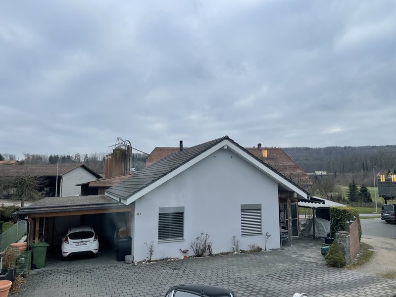 ● Gemütliches Wohnzimmer: Mit authentischem Holzofen, charmanter Ziegelwand und direktem Zugang zum Wintergarten ● Zusätzlicher Wohnbereich: Modernes Wohnzimmer mit weissem Fliesenboden und Schiebetür zum Wintergarten ● Gemütlicher Sitzplatz im Garten ● Autounterstand und Parkplatz: Sichere Unterstellung für Ihr Fahrzeug ● Eigener Waschraum mit Waschmaschine und TumblerLage und Umgebung: Das Haus liegt in ruhiger Umgebung und ist dennoch bestens angebunden. Der Bahnhof Galmiz ist in nur 7 Gehminuten erreichbar.