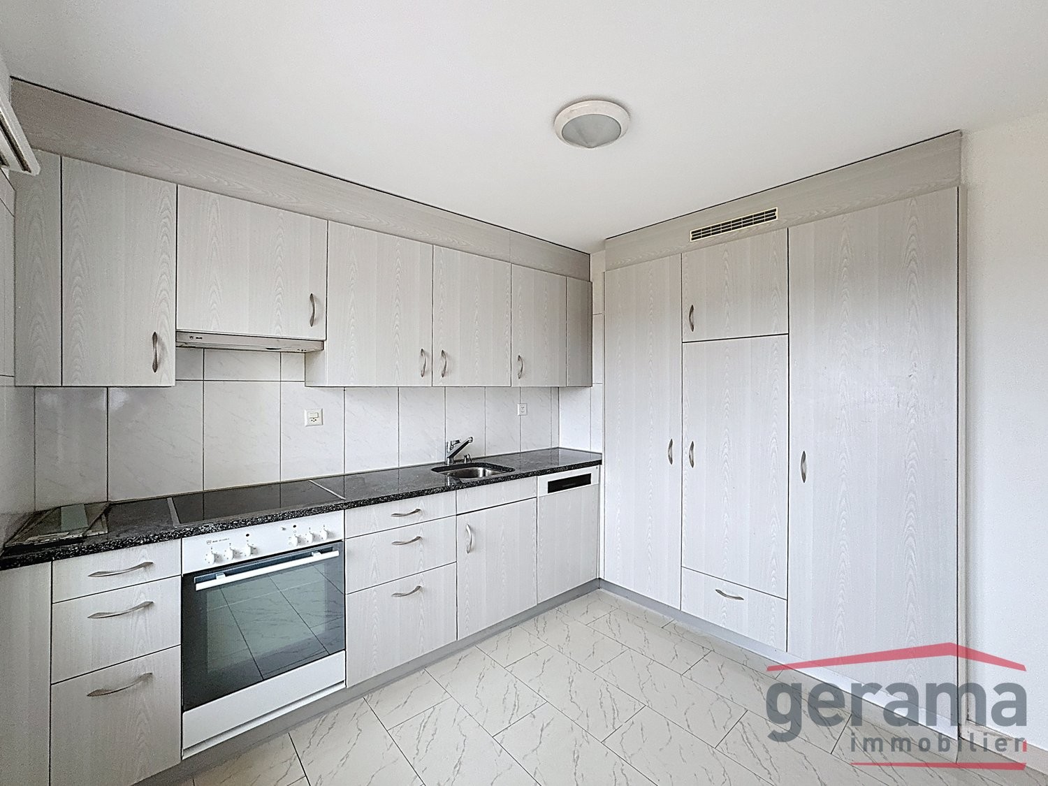 - Cuisine agencée fermée (carrelage) avec lave-vaisselle et vitrocéram