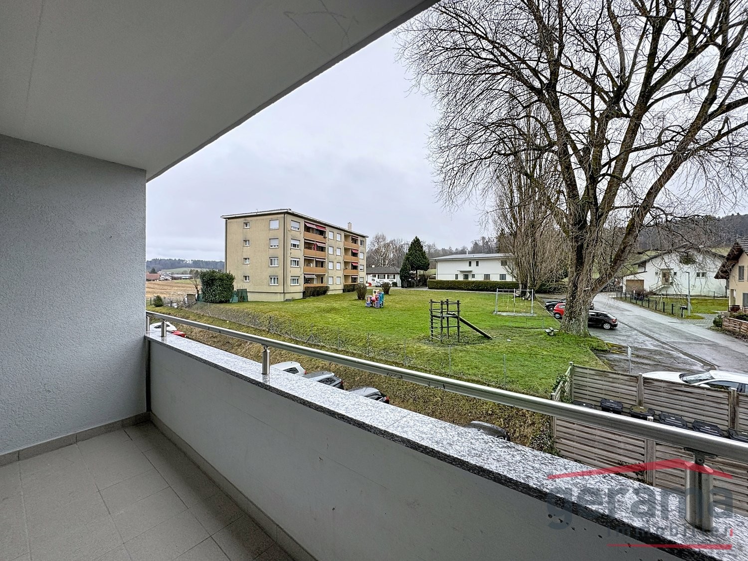 L'immeuble est situé dans un endroit calme à la sortie du village, à proximité de Courtepin.