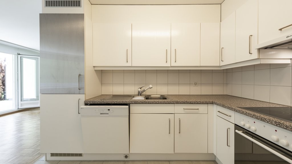 Küche mit Geschirrspüler und Glaskeramikkochfeld.